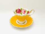 Vintage Royal Albert Yellow and Cabbage Rose Teacup and Saucer